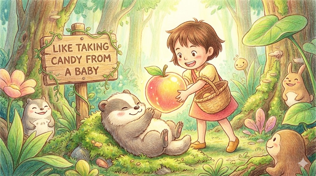 like taking candy from a baby [laɪk ˈteɪkɪŋ ˈkændi frʌm ə ˈbeɪbi]