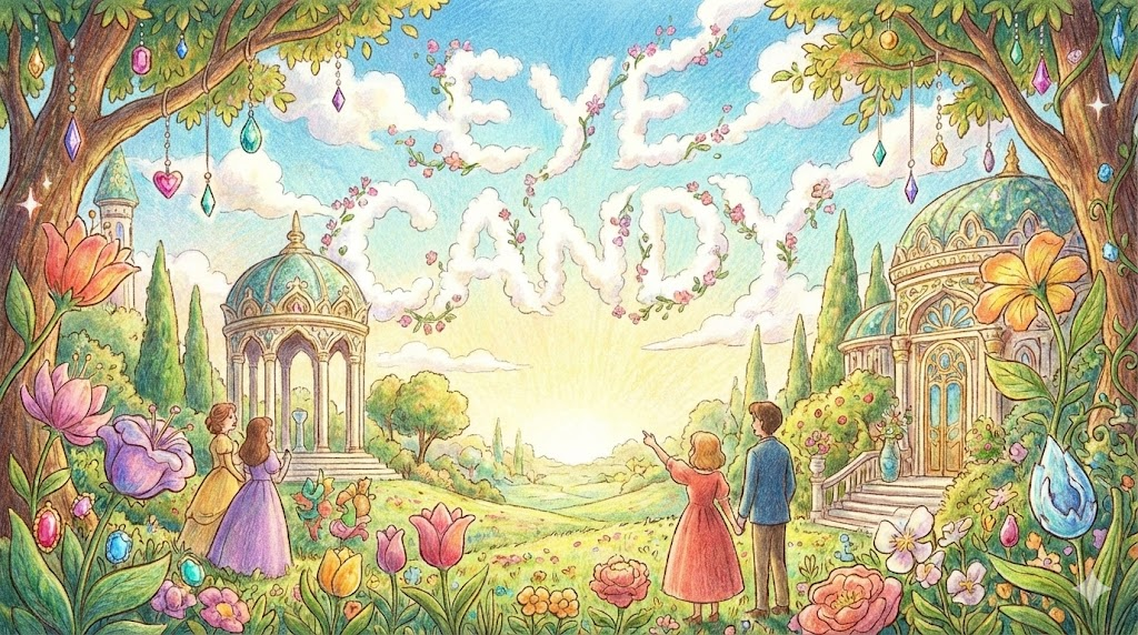 눈으로 보기에 달콤한 사탕 같다는 뜻으로, '시각적으로는 매우 매력적이고 화려하지만, 실속이나 깊이는 부족한 대상' 을 묘사할 때 씁니다. 화려한 CG로 도배된 영화, 기능보다는 디자인만 예쁜 전자기기, 혹은 외모는 뛰어나지만 내면은 알 수 없는 이성을 지칭할 때 주로 사용합니다.