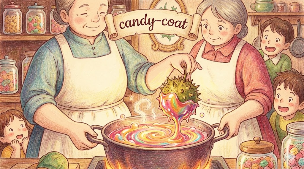 - Candy-coat: 쓴 약에 설탕을 입히듯, 나쁜 소식이나 불쾌한 사실을 듣기 좋게 '겉포장하다(사탕발림하다/미화하다)' 입니다. (= Sugarcoat)