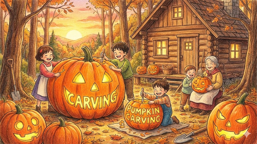 - Pumpkin carving. (호박 조각하기. - 할로윈 때 호박(Jack-o'-lantern) 얼굴을 파내는 것)