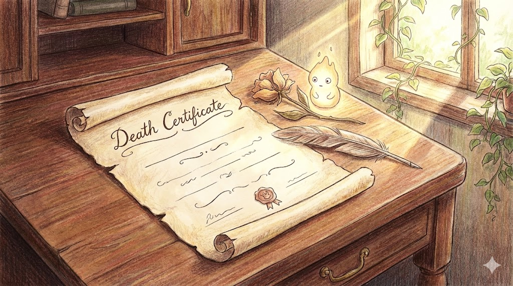 - 해석: 사망 사실과 원인을 의사가 증명하는 문서로, 유산 상속이나 보험 처리에 필수적입니다.