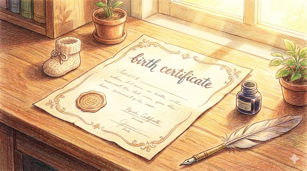 사람이 태어났다는 사실을 국가가 공적으로 증명하는 가장 기초적인 문서입니다. 아기가 태어나면 병원이나 관공서에 신고하여 발급받으며, 이름, 생년월일, 출생 장소, 부모의 인적 사항이 적혀 있습니다. 여권 발급, 학교 입학, 신분 확인 등 인생의 주요 시점마다 반드시 필요한 서류입니다.