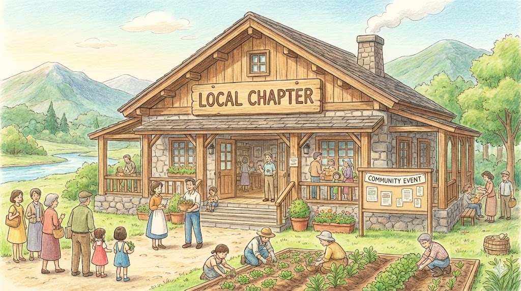 전국적이거나 국제적인 큰 조직(적십자, 협회, 동호회, 노조 등)의 '특정 지역(Local)에 있는 지점이나 모임' 을 가리킵니다. 여기서 'Chapter'는 책의 장이 아니라 조직의 '지부'를 뜻합니다.