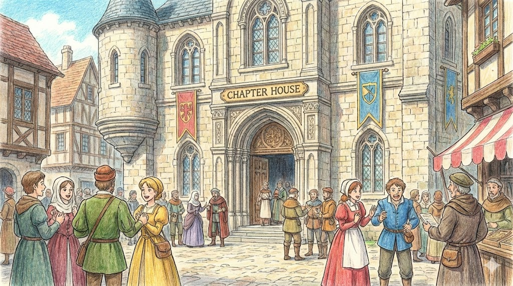 어원 팁: 수도사들이 매일 성경의 한 '장(Chapter)' 을 읽기 위해 모였는데, 나중에는 그들이 모이는 '모임/지부' 자체를 Chapter라고 부르게 되었습니다.