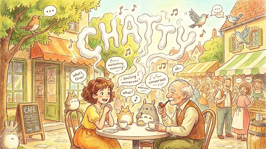 어원 팁: Chat은 Chatter(재잘거림) 를 줄인 말입니다. 무겁고 진지한 토론이 아니라, 새들이 지저귀듯 가볍고 즐거운 분위기를 상상하면 됩니다.