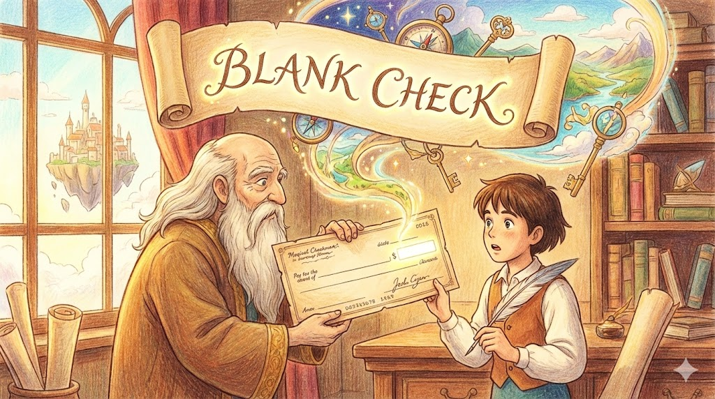 - 문자 그대로: 금액란이 비어 있어서(Blank) 받는 사람이 '원하는 만큼 금액을 적을 수 있는 수표'.