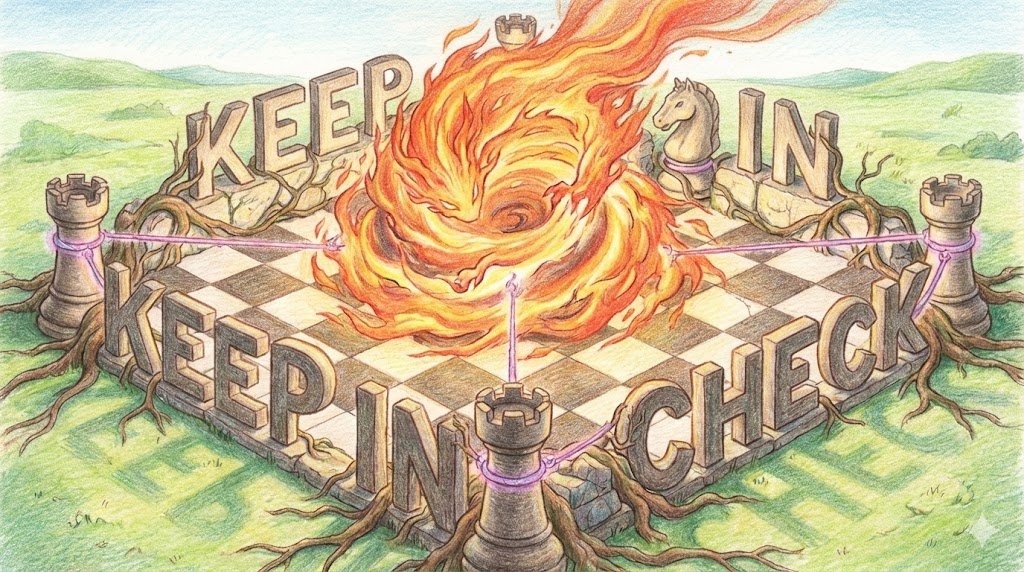 여기서 'Check'는 확인하다는 뜻이 아니라, 체스나 군사 용어에서 유래한 '저지하다, 억누르다' 라는 뜻입니다. 감정(화, 흥분)이 폭발하지 않도록 꾹 누르거나, 물가 상승, 질병 확산, 적의 공격 같은 부정적인 상황이 '더 커지지 않도록 통제하에 두는 것' 을 말합니다.