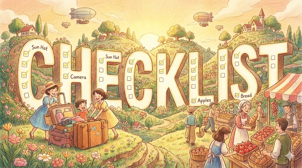 - 해석: 해야 할 일이나 준비물을 잊지 않기 위해 목록을 만들고 하나씩 표시(Check)하는 표입니다.