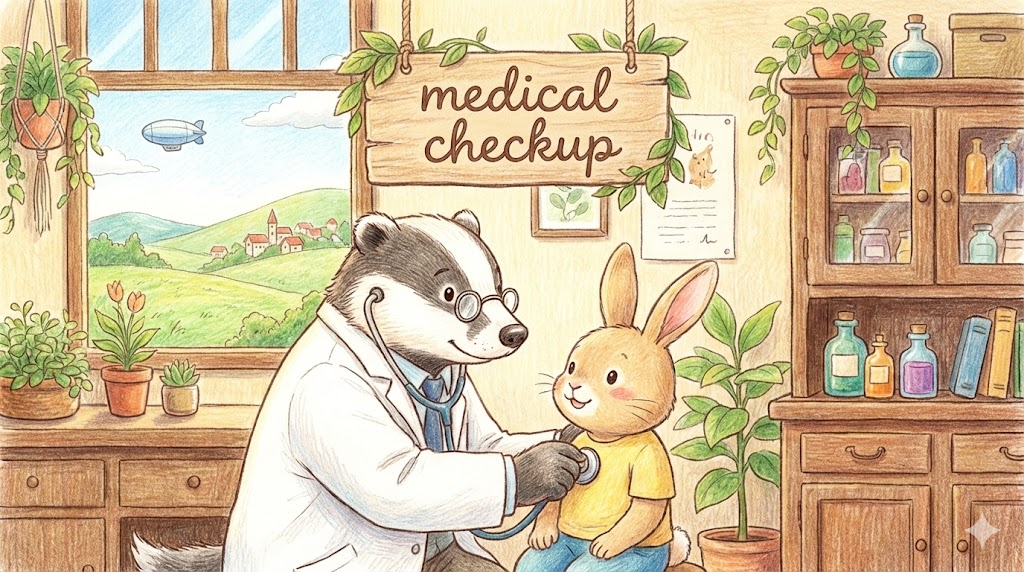 아파서 병원에 가는 것이 아니라, '건강 상태를 미리 점검하고 예방하기 위해 받는 정기적인 검사' 를 말합니다. 의사가 전반적인 몸 상태를 살펴보는 것을 뜻하며, 단순히 "Checkup"이라고만 해도 문맥상 병원 검진을 의미하는 경우가 많습니다.