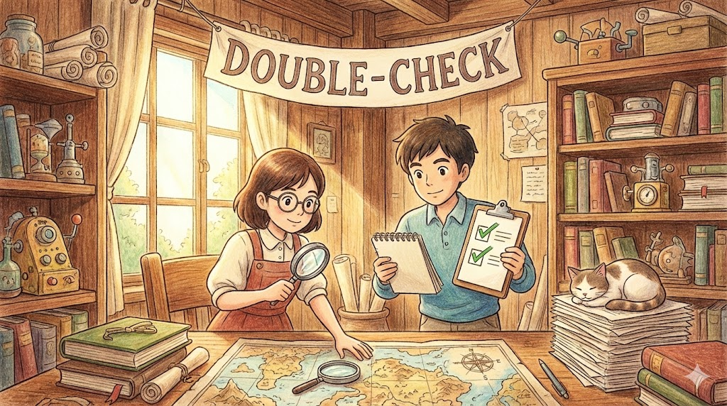 한 번 확인(Check)했지만, 혹시 실수나 빠뜨린 것이 없는지 '확실히 하기 위해 한 번 더 꼼꼼하게 검토하는 것' 을 말합니다. 중요한 일을 처리할 때 실수를 방지하기 위한 필수적인 과정입니다.