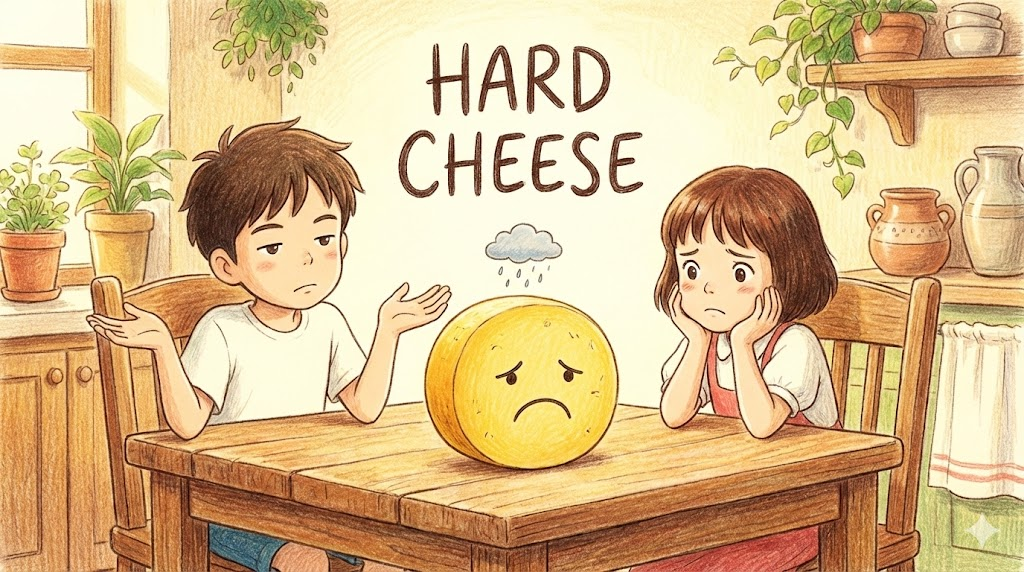 | hard cheese | 불운, 딱한 일 | 명사구, '냉소'. | '딱딱하게' '굳어' '못' '먹게' '된' '치즈' -> '운이' '나쁨'. |