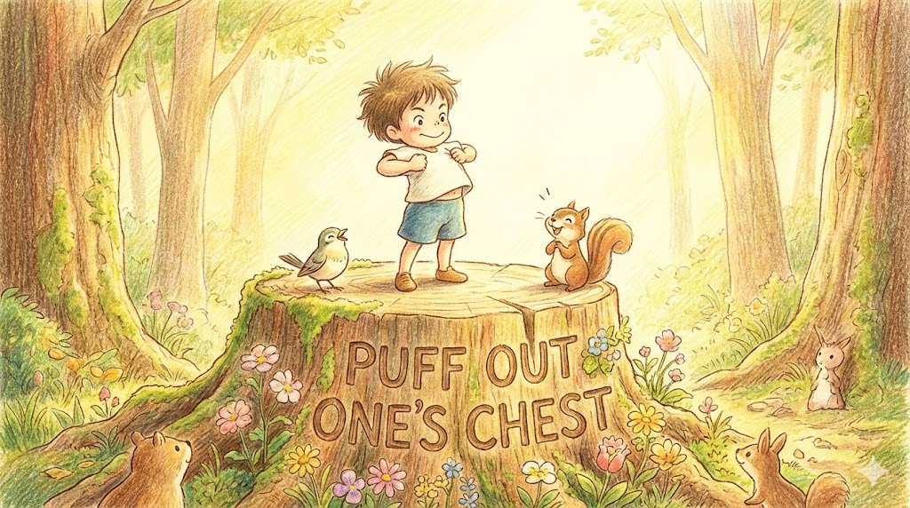 - The little boy puffed out his chest with pride. (그 어린 소년은 자랑스럽게 가슴을 쫙 폈다.)