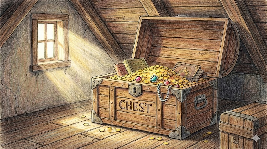'chest'는 우리 몸의 "가슴(흉부)" 을 뜻하는 신체 용어이기도 하지만, 튼튼한 "상자(궤)" 나 "서랍장" 이라는 뜻으로도 생활 영어와 문학 작품에 매우 자주 등장합니다.