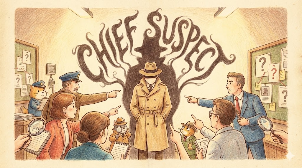 - Chief suspect: 범죄 수사에서 가장 의심스러운 사람, '유력 용의자(주요 용의자)' 입니다.