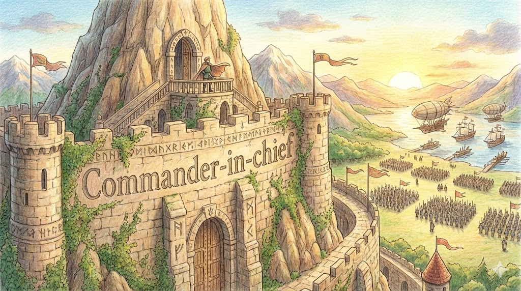 - Commander-in-chief: 전군의 지휘권을 가진 최고 사령관, 즉 '군 통수권자' 입니다. (미국에서는 대통령을 지칭함)