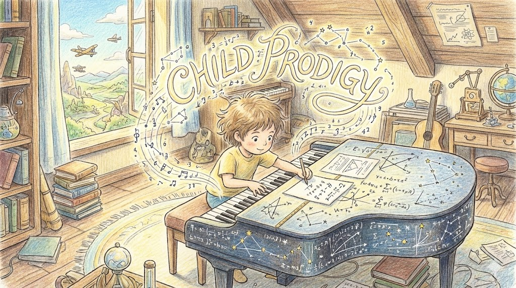 어린 나이에 음악, 수학, 체스 등의 특정 분야에서 성인 전문가 수준의 '놀라운 재능과 기술을 보여주는 아이' 를 뜻합니다. 모차르트처럼 어릴 때부터 천재성을 드러낸 사람을 묘사할 때 씁니다.