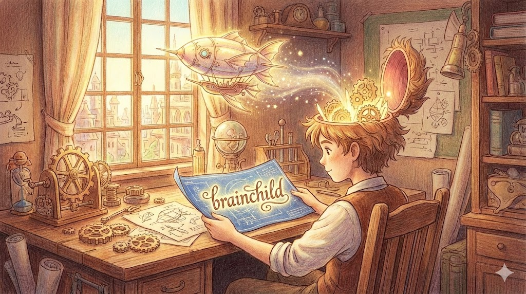 수능이나 모의고사 지문에서 Brainchild가 나오면 "똑똑한 아이"가 아니라, 어떤 계획이나 발명품이 "누구의 머리에서 나왔는가(Origin/Invention)" 를 묻는 맥락입니다.