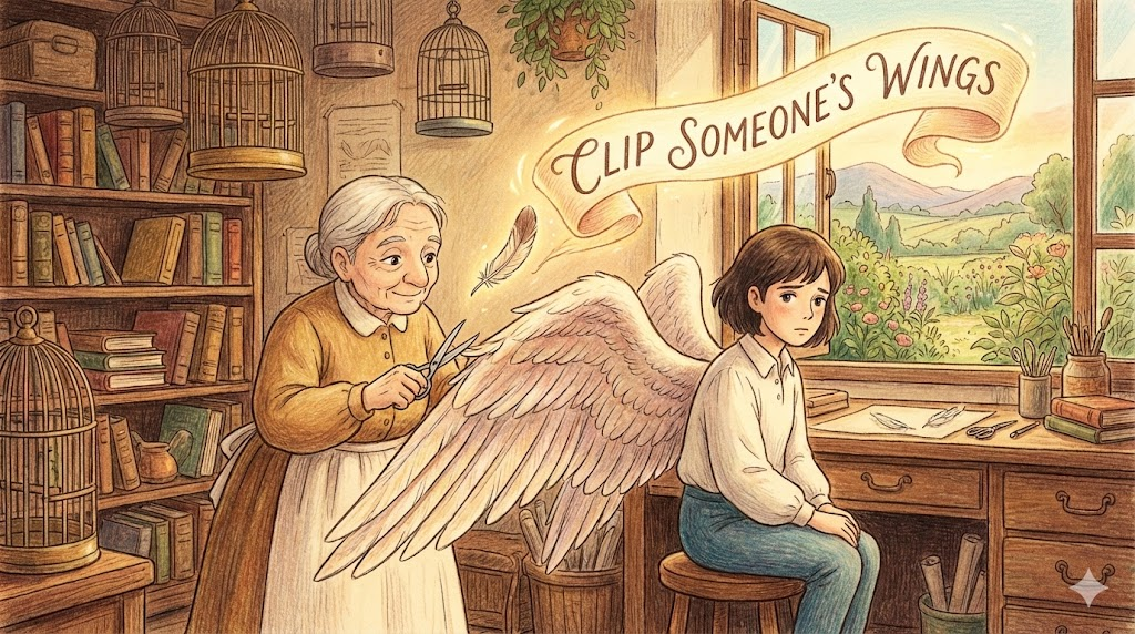 새가 날아가지 못하게 날개 끝을 자르는 것에서 유래했습니다. 누군가가 너무 자유분방하게 행동하거나, 권력을 남용하거나, 야망이 지나칠 때, 그 사람의 '자유나 권한을 빼앗아 꼼짝 못 하게 만드는 것' 을 비유적으로 표현합니다. 부모가 자녀의 외출을 금지하거나, 회사가 직원의 예산을 삭감할 때 씁니다.