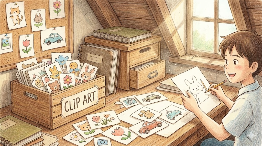 워드 프로세서나 프레젠테이션 프로그램을 쓸 때, 사용자가 직접 그리지 않고도 문서에 삽입할 수 있도록 미리 제공되는 '이미 만들어진 그림이나 아이콘 모음' 입니다. 주로 만화 같은 스타일의 단순한 일러스트가 많으며, 저작권 걱정 없이 쓸 수 있는 이미지를 가리킬 때 씁니다.