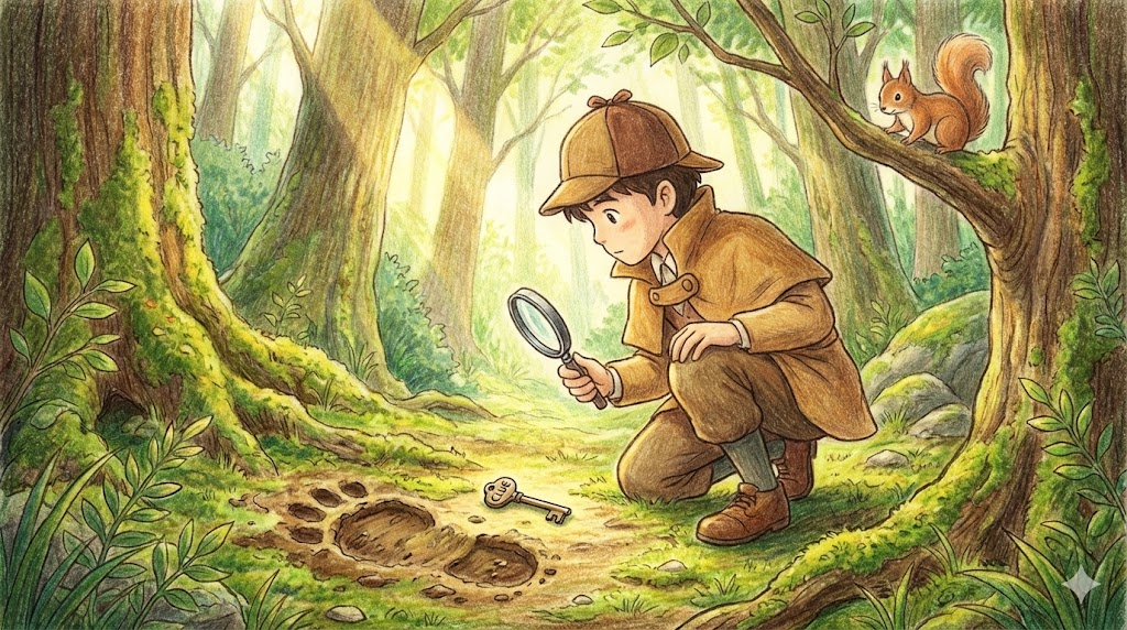 - 해석: 탐정이나 경찰이 사건 현장을 조사하며 증거를 찾는 행동입니다.