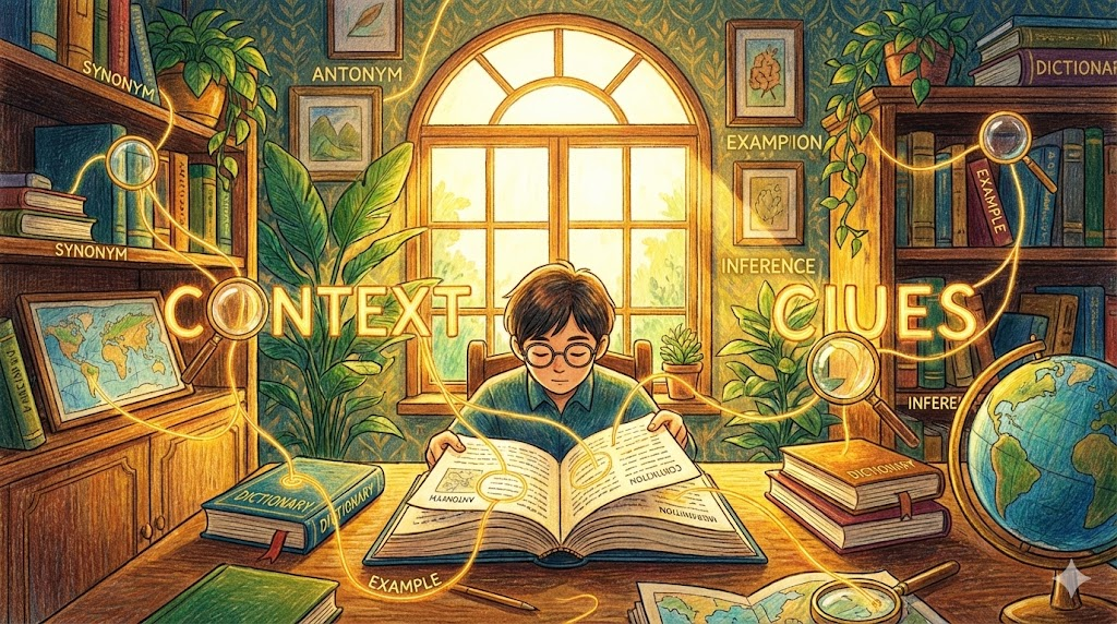 모르는 단어가 나왔을 때, 사전을 찾지 않고도 '앞뒤 문장이나 상황(Context)' 을 통해 그 뜻을 유추할 수 있게 해주는 정보를 말합니다. 독해력을 기를 때 가장 중요한 기술 중 하나로, "문맥을 통해 때려 맞춘다"라고 할 때 그 근거가 되는 것이 바로 문맥상의 단서입니다.