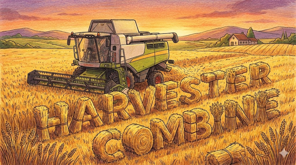 곡물을 베는 '예취', 이삭을 터는 '탈곡', 그리고 이물질을 골라내는 '정선' 작업을 하나의 기계로 통합(Combine) 하여 수행하는 대형 농기계입니다. 현대 농업 효율성의 상징과도 같으며, 보통 줄여서 "Combine" 이라고 부릅니다.