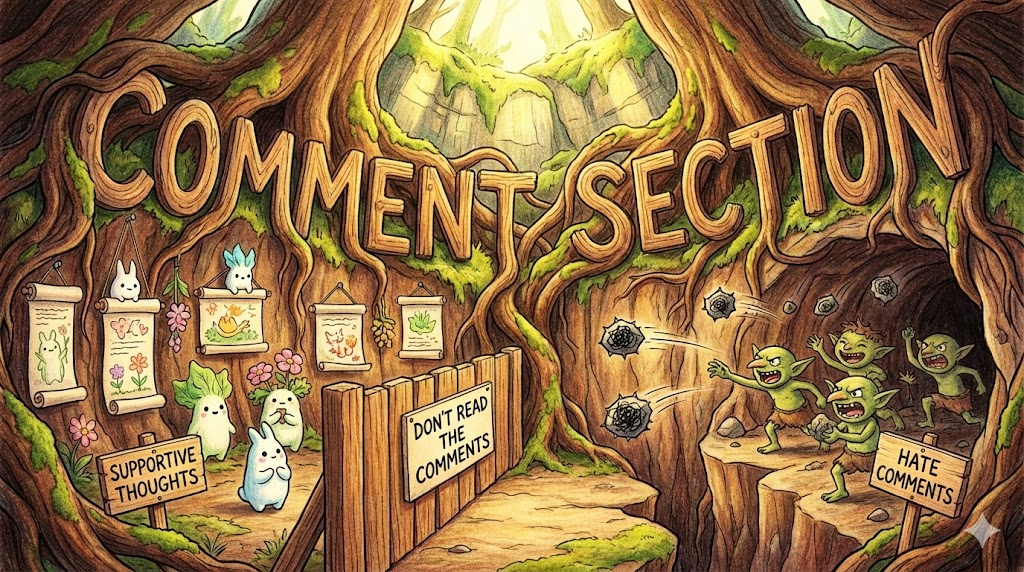 - Don't read the comment section if you want to stay happy. (정신 건강을 위해 댓글창은 읽지 마라.)