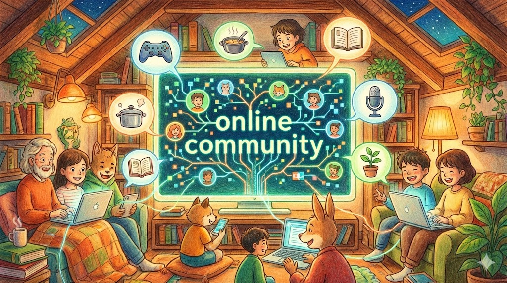 물리적으로 만나지 않아도 인터넷상에서 같은 관심사를 가진 사람들이 모여 정보를 공유하고 친목을 다지는 '사이버 공간의 모임' 입니다. 카페, 밴드, 레딧(Reddit), 디스코드 서버 등이 모두 포함됩니다. 익명성이 보장되지만 그만큼 결속력이 강하고 트렌드를 주도하는 '여론 형성의 장' 이기도 합니다.