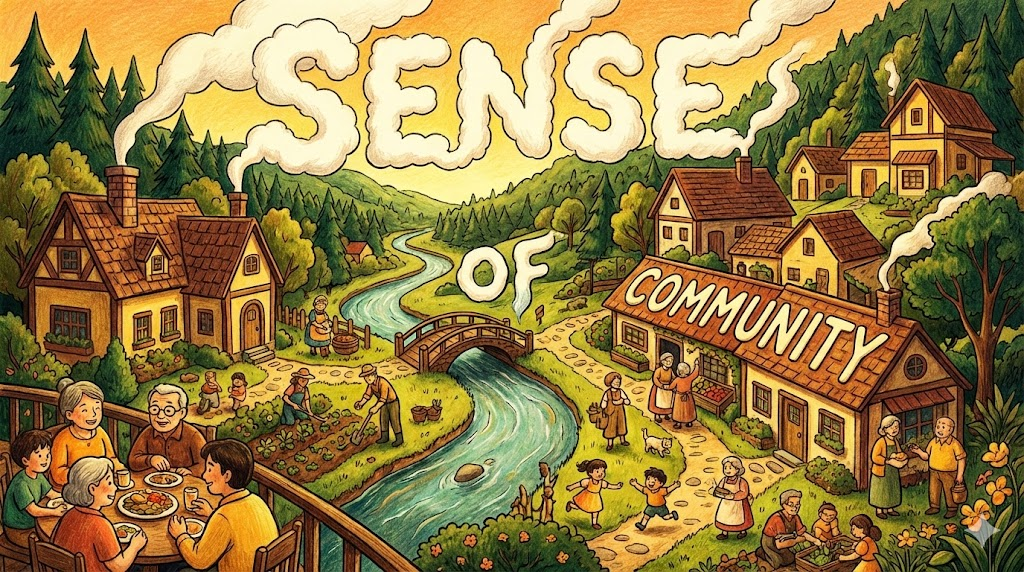 물리적으로 같은 장소에 사는 것을 넘어, '우리는 하나로 연결되어 있다' 는 심리적인 느낌을 말합니다. 이웃끼리 서로 알고 지내고, 챙겨주며, 내가 이 집단에 소속되어 안전하다는 '정서적 안정감' 을 뜻합니다. 삭막한 도시 생활에서 가장 결핍되기 쉬운 것이 바로 이 sense of community이며, 이것이 강한 곳은 범죄율이 낮고 삶의 만족도가 높다고 합니다.