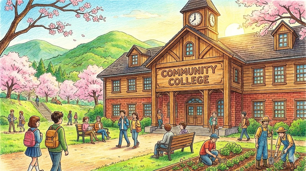 주로 미국에서 사용되는 개념으로, 4년제 대학교(University)와는 구별되는 '지역 주민들을 위한 2년제 공립 대학' 을 말합니다. 학비가 훨씬 저렴하고 입학 조건이 까다롭지 않아서, 여기서 2년을 마치고 4년제 대학으로 편입하거나, 직업 기술을 배우기 위해 많이 다닙니다. "Community"라는 이름처럼 '누구에게나 열려 있는 실용적인 배움터' 라는 긍정적인 의미를 담고 있습니다.