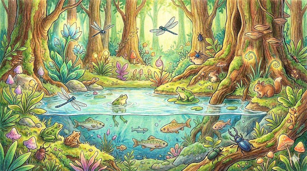 생태학 용어로, 특정 지역(숲, 호수 등)에 함께 살고 있는 '모든 생명체(동물, 식물, 미생물)의 집단' 을 말합니다. 단순히 개별 생물들이 모여 있는 것이 아니라, 먹이사슬로 얽혀 서로 잡아먹고 먹히며 공생하는 '상호 의존적인 관계망' 을 강조합니다. 생태계(Ecosystem)의 살아있는 구성 요소를 총칭하는 전문적인 표현입니다.