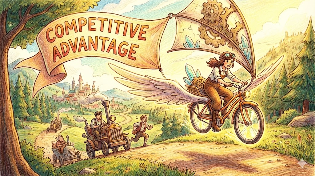 - 해석: (경제/비즈니스 필수) 남들보다 더 나은 성과를 낼 수 있게 해주는 독보적인 강점이나 유리한 조건을 말합니다.