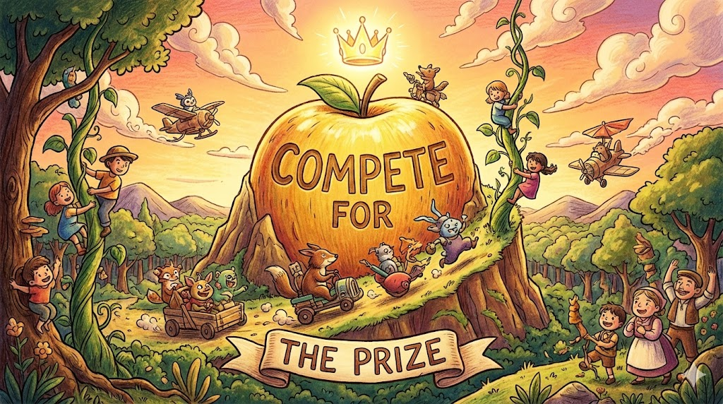 - 해석: 경쟁의 '목표'나 '상품'이 뒤에 나옵니다.