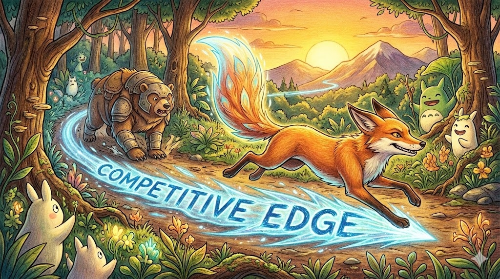 'Advantage'와 비슷하지만, 'Edge(모서리, 날)' 라는 단어에서 알 수 있듯이, 승패를 가르는 '결정적인 한 끝 차이' 나 '남보다 앞서 나가는 날카로움' 을 강조합니다. 비즈니스뿐만 아니라 스포츠나 개인적인 능력에서도 많이 쓰입니다. "그 선수는 스피드가 좋아"라고 할 때, 그 스피드가 바로 그 선수의 competitive edge입니다.