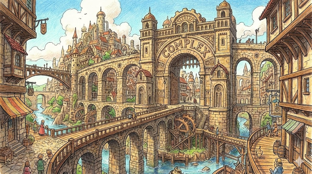 - 구조: 단순히 어지러운 게 아니라, 시계 내부나 인체처럼 수많은 부품이 정교하게 얽혀 있는 상태를 말합니다.