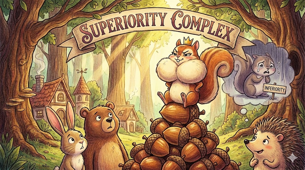 - Superiority complex: 열등감을 감추기 위해 오히려 남보다 월등히 낫다고 믿거나 과시하는 '우월감(우월 콤플렉스)' 입니다.