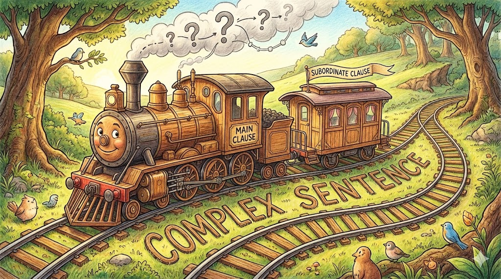 영어 문법에서 주어와 동사가 있는 덩어리(절, Clause)가 두 개 이상 연결된 문장인데, 그중 하나는 '혼자서도 문장이 되는 주인(주절)' 이고, 다른 하나는 '주인에게 딸려 있는 종(종속절)' 인 구조를 말합니다. "비가 왔기 때문에(종), 나는 집에 있었다(주인)"처럼 원인, 조건, 시간 등을 설명하기 위해 문장이 길어진 형태입니다.