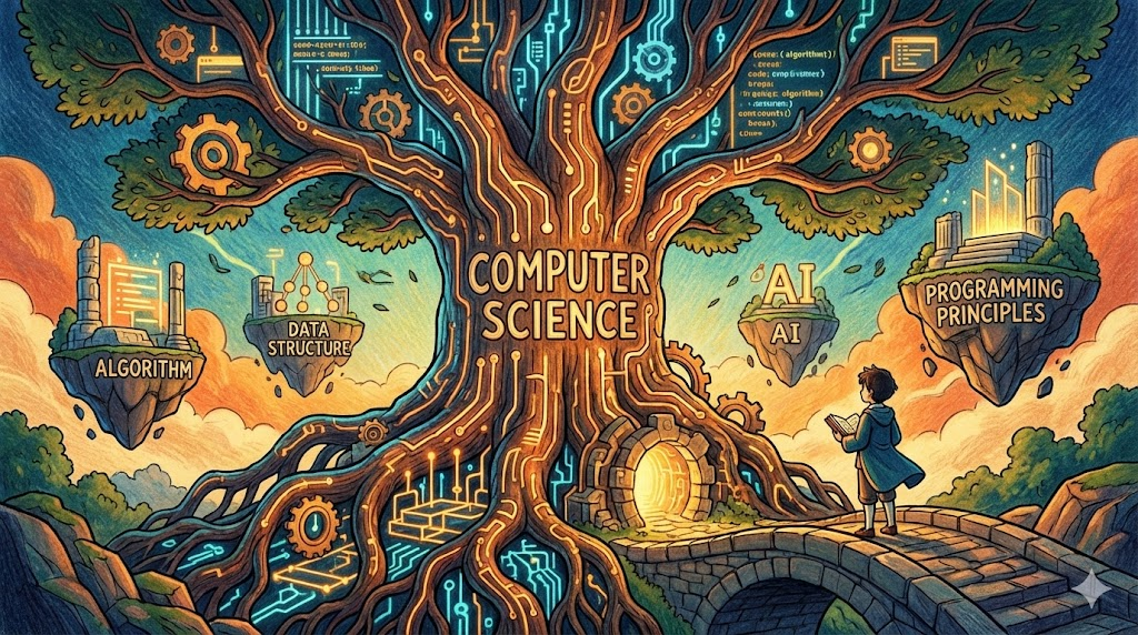 대학에서 배우는 학문 분과로서의 컴퓨터 연구를 말합니다. 단순히 엑셀을 다루거나 PC를 조립하는 것이 아니라, '알고리즘, 데이터 구조, 인공지능, 프로그래밍 언어의 원리' 등을 깊이 있게 파고드는 이론적이고 공학적인 분야입니다. 줄여서 'CS'라고도 많이 부릅니다.