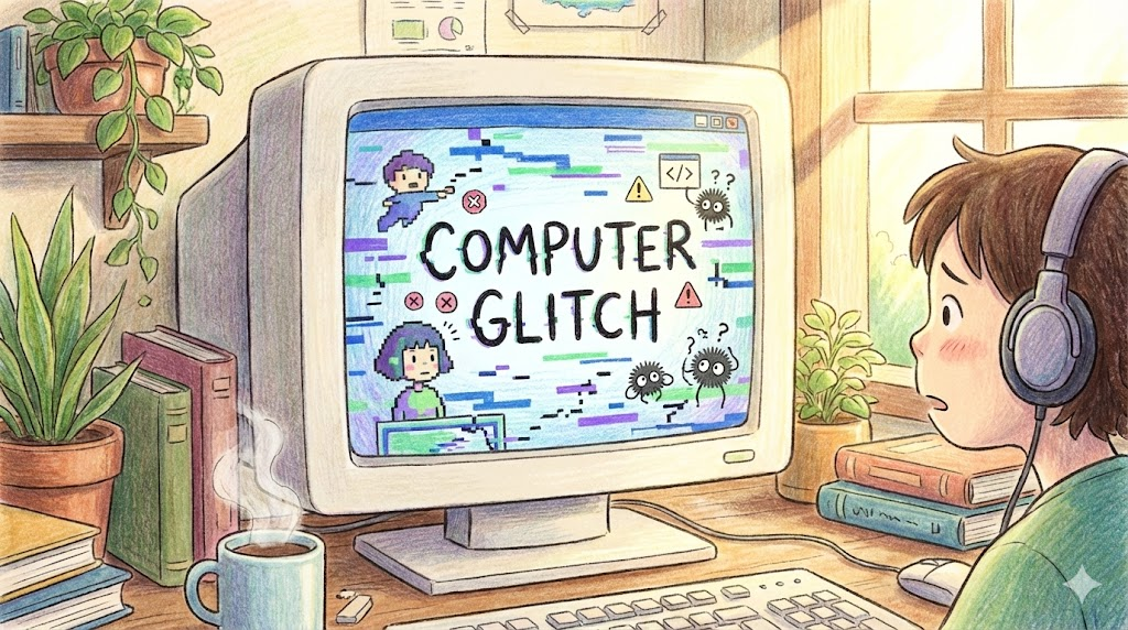 - Computer glitch: 원인을 알 수 없는 '일시적인 작은 오류(오작동)' 입니다. 시스템이 완전히 멈추는(Crash) 것보다는 가볍고, 껐다 켜면 해결되는 경우가 많습니다.