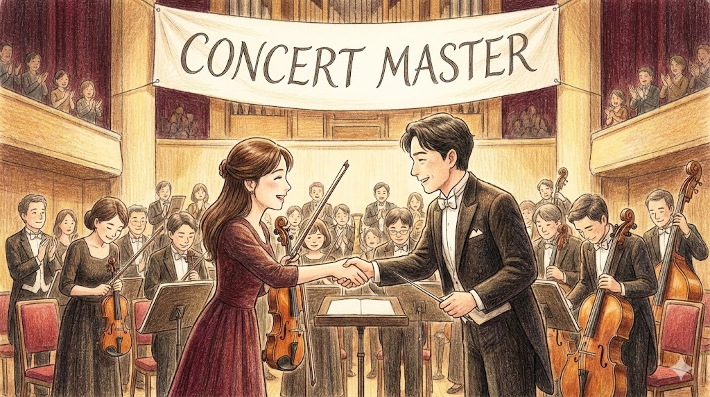 오케스트라에서 지휘자 다음으로 가장 높은 서열을 가진 연주자입니다. 제1 바이올린 파트의 수석(Leader)이 이 역할을 맡으며, 공연 시작 전 오케스트라 전체의 조율(Tuning)을 지시하고, 지휘자와 단원들 사이의 소통을 돕는 '오케스트라의 반장' 같은 존재입니다. 무대에 입장할 때 지휘자보다 먼저 나와 박수를 받고, 연주가 끝나면 지휘자와 악수를 하는 그 사람이 바로 콘서트 마스터입니다.