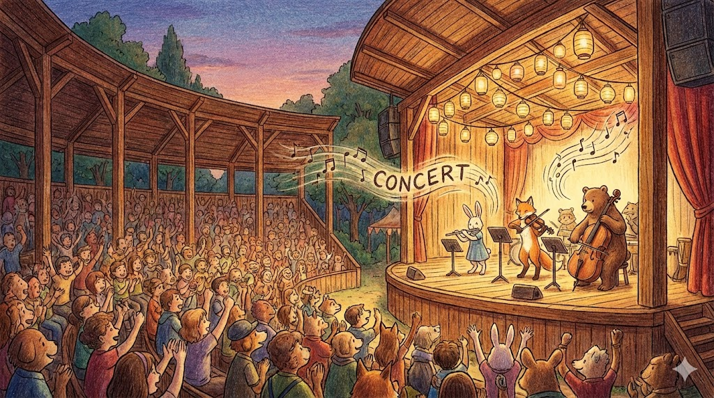 - (야외 콘서트는 독특한 분위기를 제공합니다.)
