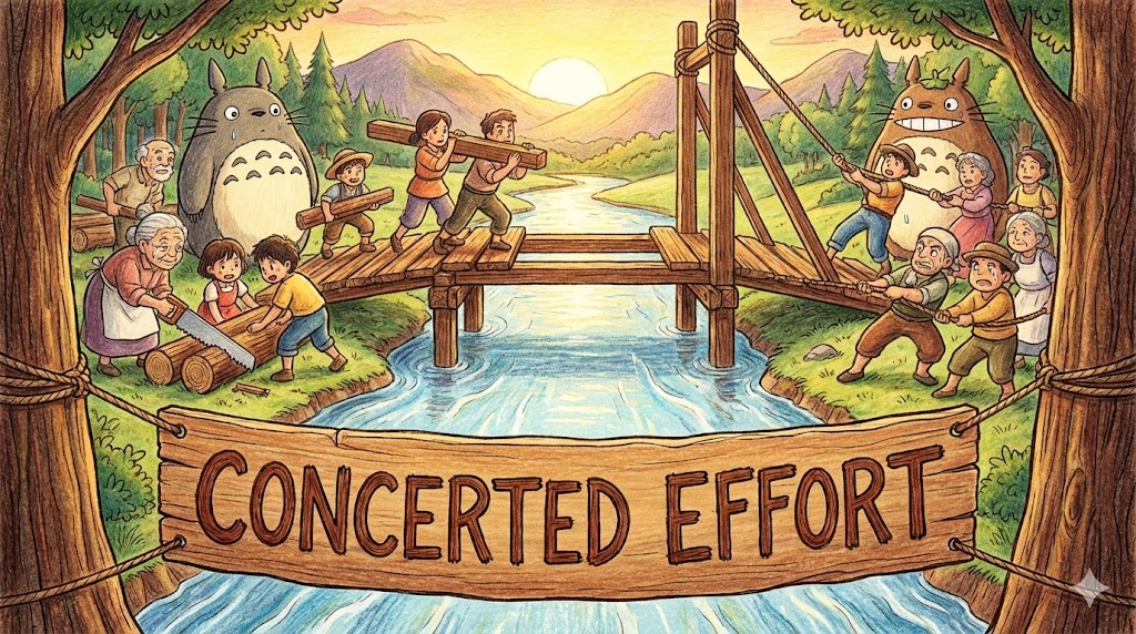 - 강조: Concerted effort는 그냥 노력이 아니라, 모든 자원과 힘을 한 방향으로 집중시킨 강력한 노력을 말합니다.