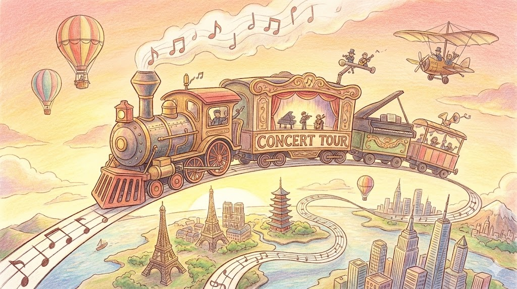 - Concert tour: 여러 도시나 국가를 돌며 공연하는 '순회공연(콘서트 투어)' 입니다.
