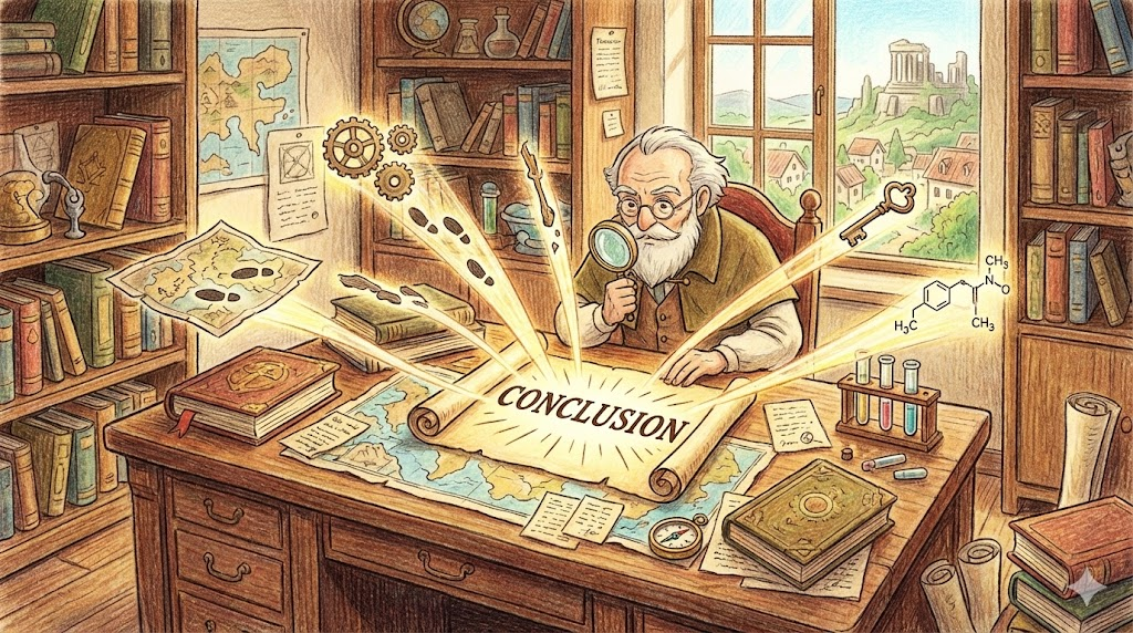 - (단서들을 따라가면, 당신은 논리적인 결론에 도달할 것입니다.)