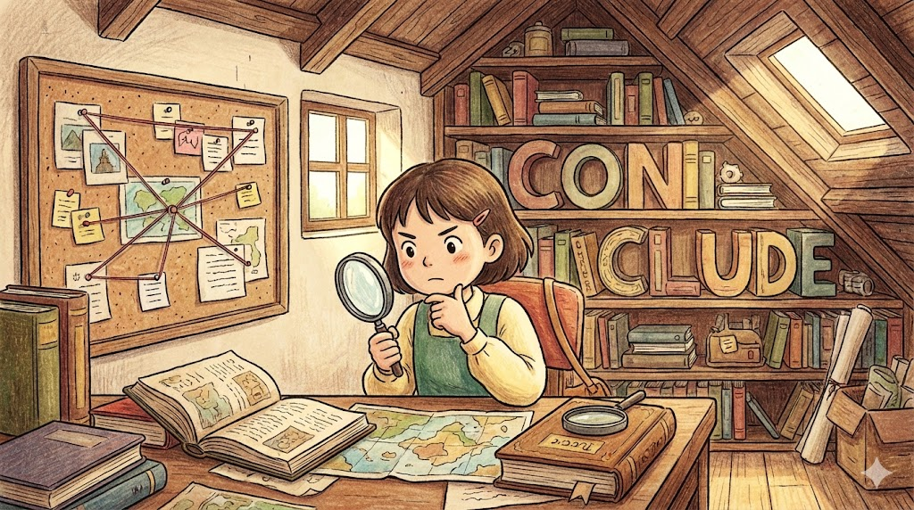- 사고: "I think"는 막연한 생각이지만, "I conclude"는 증거를 바탕으로 논리적인 판단을 내렸다는 확신이 들어 있습니다.