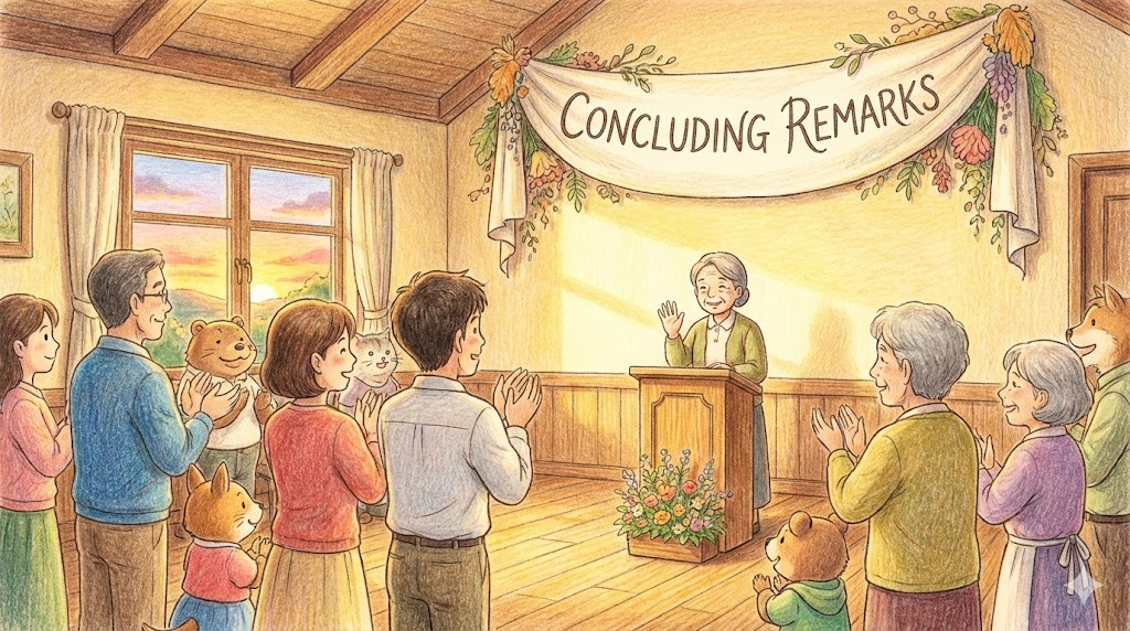 - Concluding remarks: 행사의 끝에 하는 '맺음말(폐회사/정리 발언)' 입니다.