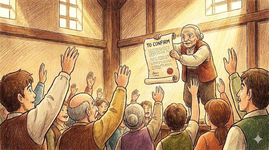 | 동사 (V.) | 승인하다 | (공식 직위 등에) 임명하다. | Confirm him as CEO. (그를 CEO로 승인/확정하다.) |