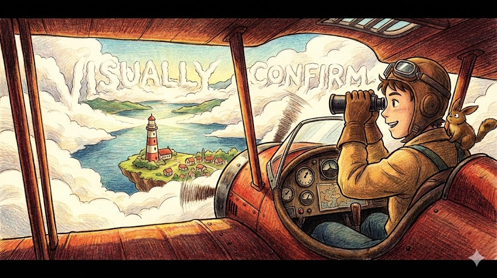 계기판, 센서, 혹은 보고서에 의존하지 않고, '사람의 눈으로 직접 보고 사실 여부를 파악하는 것' 을 말합니다. 군사 작전에서 목표물을 식별하거나, 비행기 조종사가 활주로를 찾을 때, 혹은 기술자가 고장 부위를 찾을 때 사용하는 전문적이고 구체적인 표현입니다.