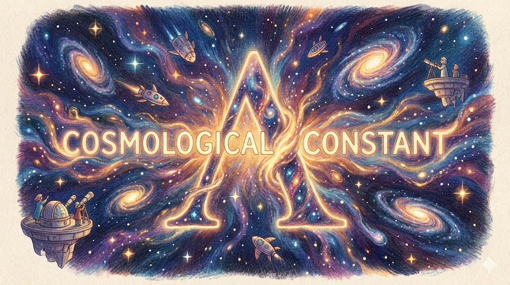 아인슈타인이 일반 상대성 이론에서 우주가 팽창하거나 수축하지 않고 정적인 상태를 유지하기 위해 도입했던 항( \Lambda )입니다. 나중에 허블이 우주 팽창을 발견하자 아인슈타인은 이를 "내 인생 최대의 실수"라고 했지만, 현대에는 '우주를 가속 팽창시키는 암흑 에너지(Dark Energy)' 를 설명하는 중요한 개념으로 다시 부활했습니다.