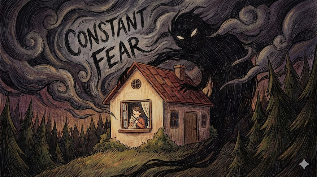 - 해석: 안심하지 못하고 늘 불안에 떨고 있는 심리 상태입니다.